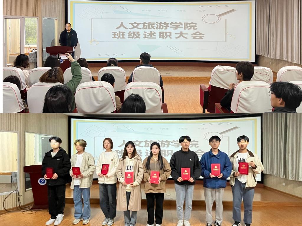 为推进人文旅游学院班级建设,营造良好的学习氛围和育人环境,4月23日下午,人文旅游学院在3D导游实训室举办了第十届班级建设述职会。2022级共8个班级参加述职,学院党总支副书记徐喜喜和全体辅导员老师出席大会。