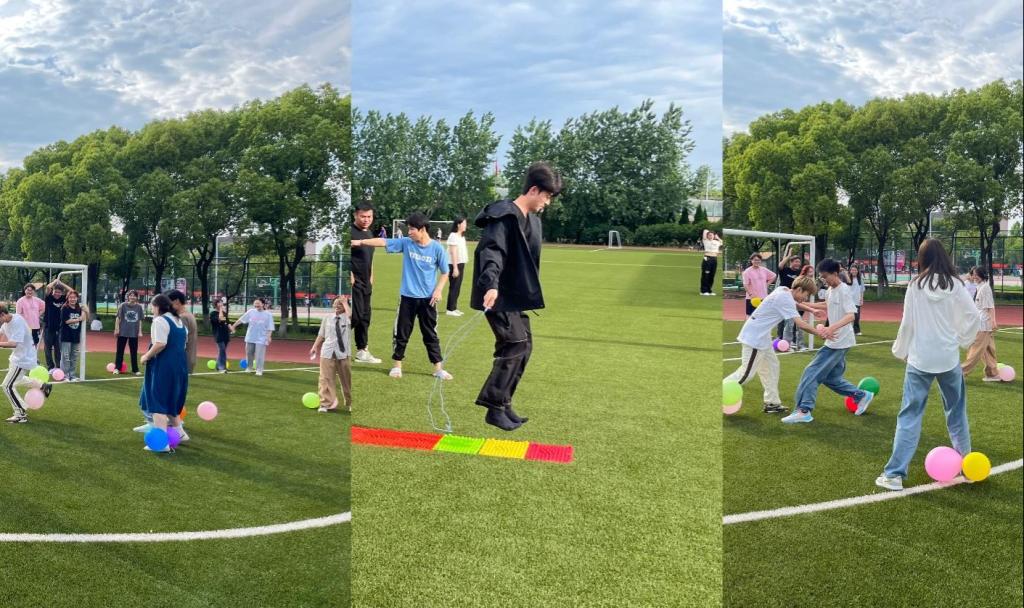 本次趣味运动会融合了体育、文化、趣味、智力等元素,分为团体赛和个人赛,团体赛项目主要有齐心协力、合力踩气球、拔河比赛等活动,促进学生合作参与,发扬团队协作精神;个人赛项目包括指压板跳绳、投沙包等,注重对兴趣和能力的培养,锻炼学生的身体健康。
