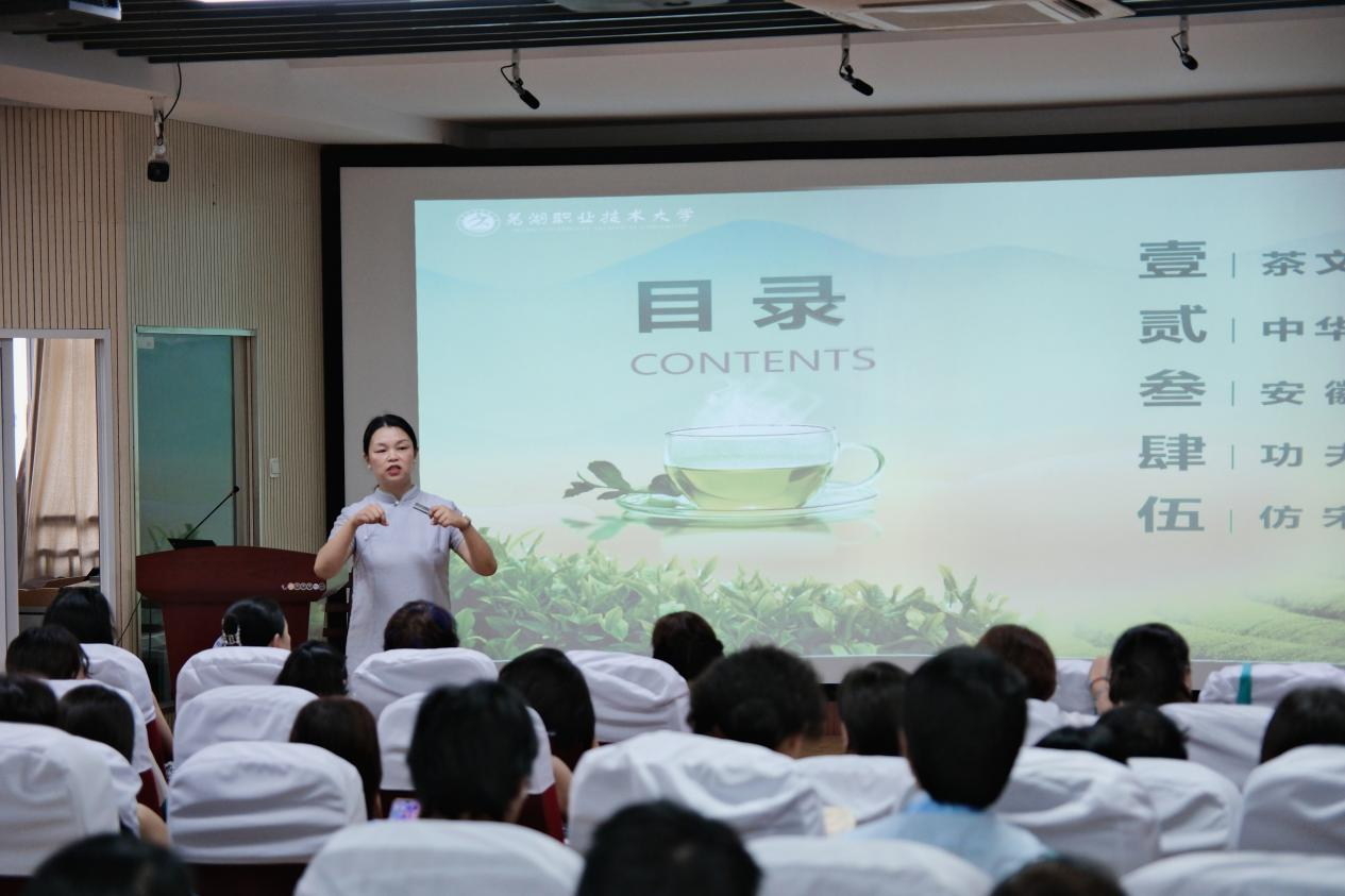 活动中,人文旅游学院杨阳副教授分享了《中华茶艺与安徽名茶》的讲座,从茶文化发展脉络到中华茶文化的世界影响,进而再到安徽名茶鉴赏,为学员们带来了一场茶学盛宴。