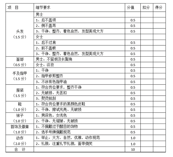 (二)仪容仪表评分标准