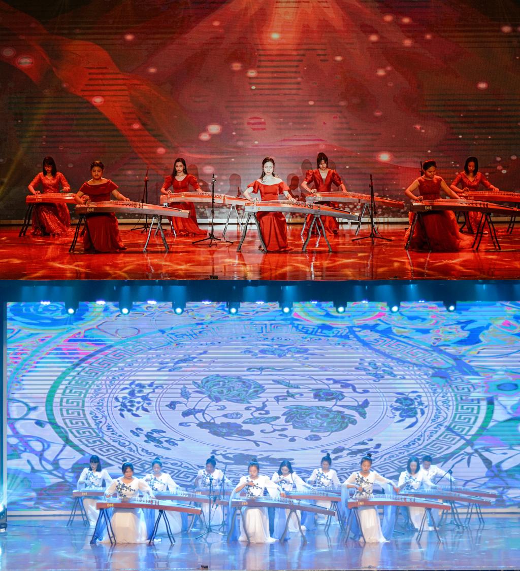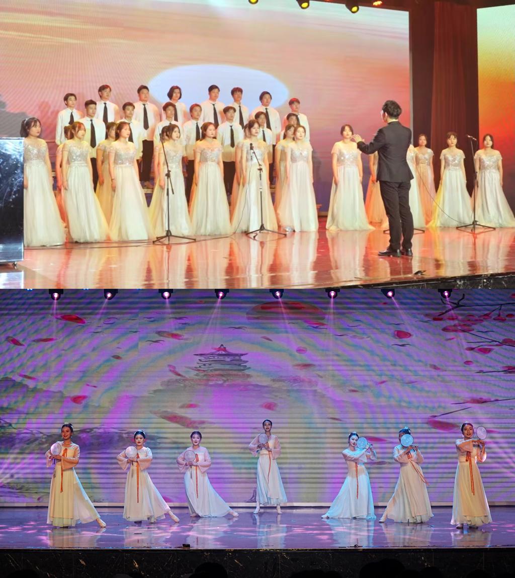 开幕式在古筝俱乐部师生大气磅礴的合奏《我和我的祖国》中拉开序幕,播音主持俱乐部同学用语言的魅力演绎了《在欢呼的人群中》,用诗歌唤醒记忆,再次唱响红色经典旋律,民族舞俱乐部呈现集形态美学、韵律美学为一体的古风舞蹈《故梦》,合唱俱乐部的同学们用洋洋盈耳的四声部混声合唱《大漠之夜》深情表达了中华民族自强不息的奋斗精神和千百万无私奉献劳动者的高贵品格,由琵琶和吉他俱乐部的师生改编的《青城山下白素贞》,让具有千年历史的中华民族弹拨乐器和西方流行弹拨乐器碰撞出了别样的火花,充分展现了中华优秀传统文化海纳百川、兼收并蓄的胸襟和智慧,影视表演俱乐部《那个黎明》带领观众重回那70年前硝烟弥漫的战场,再次感受志愿军战士英勇顽强的坚守与奉献,开幕式在形体舞蹈俱乐部《绽放》蓬勃活力的舞姿中圆满结束。持续一个小时的节目内容清歌雅舞、精彩纷呈,全方位展示了学校美育改革发展的丰硕成果,博得观众的阵阵喝彩。