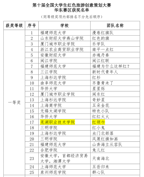 本次大赛由中国旅游协会旅游教育分会、北京第二外国语学院、中国教育电视台、福建省南平市人民政府等单位联合主办。据悉,组委会共收到298所学校的1445支团队提交的参赛作品。经过专家评审,我校人文旅游学院旅游管理专业朱训乐、蓝雅婷同学组建的红领巾团队荣获华东赛区(旅游线路设计类)一等奖;人文旅游学院荣获优秀组织奖。
