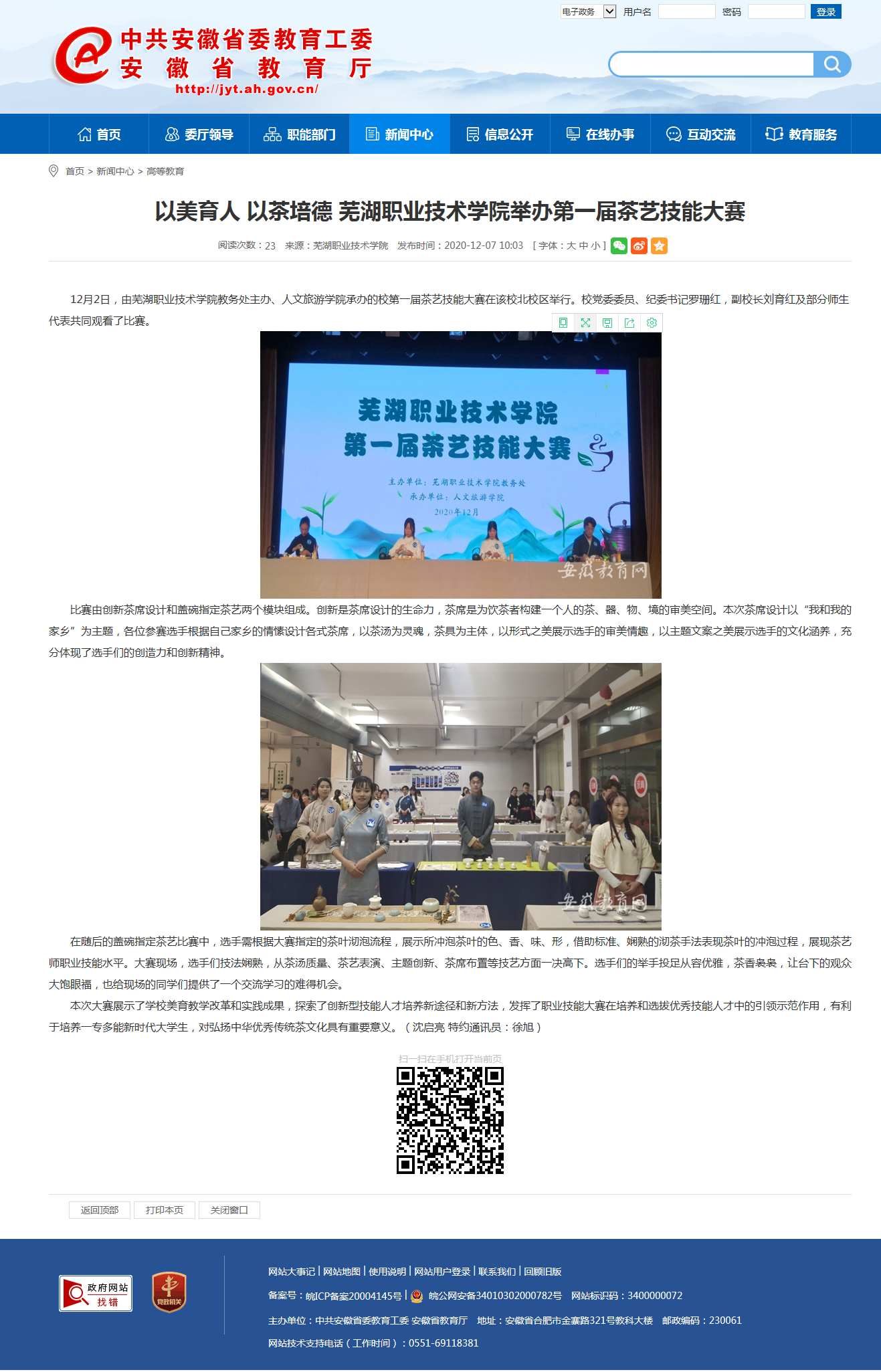 【安徽教育网】以美育人 以茶培德 芜湖职业技术学院举办第一届茶艺技能大赛