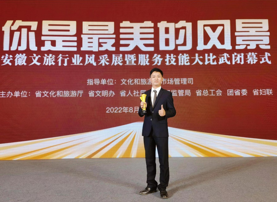 8月25日,由安徽省文化和旅游厅主办,省文明办、省人社厅、省市场监管局、省总工会、团省委、省妇联联办的2022年安徽省文旅行业服务技能大比武活动在合肥圆满落幕。我校人文旅游学院专任教师、国家高级导游翟伟以其良好的职业素养和过硬的专业技能,经过3天4轮的比赛,一路过关斩将闯入决赛,并最终获得全省导游红色讲解大赛银奖的好成绩,这也是芜湖市本届比赛获得的最高奖项。