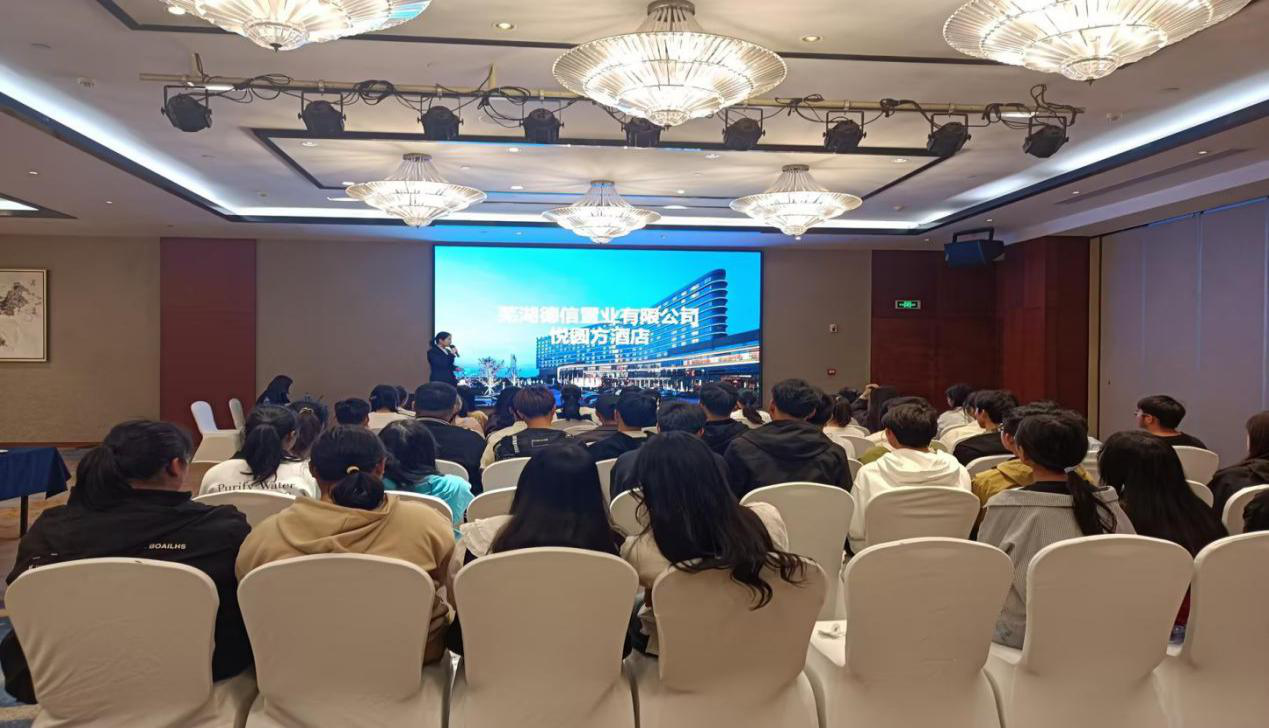 在校内认知实习活动中,学院酒店管理与数字化运营专业的优秀毕业生代表——杭州开源森泊投资旅游有限公司运营总监丁春丽,分享了从职场小白到业务精英的职业生涯发展历程,向学弟学妹们传输心得感悟,鼓励他们扎根本专业,坚定目标、坚韧前行,一定能赢得职场的不断进阶。芜湖市德信悦圆方酒店综合管理部负责人卢萍进行了一场深刻的行业认知讲座,她通过对酒店业市场环境、行业需求、人才现状等方面的深入分析,帮助同学们更深地认识了自己所学的专业并增强了个人职业发展的信心。