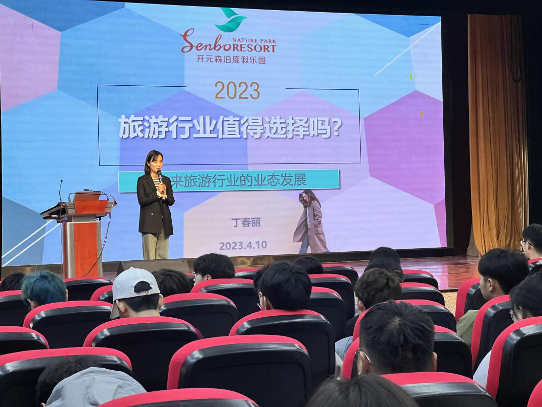 五位嘉宾围绕“旅游行业,发展趋势”“就业现状、未来需求”、“紧跟发展,提升能力”等主题内容,深入浅出地讲述了全域旅游未来的发展趋势,并列举了大量生动鲜活的案例分析,包括“酒店+科技”“旅游+教育”“旅游+人文”等内容,让同学们对全域旅游行业的发展新趋势、新业态、新要求有了更加深入的认知。嘉宾们同时为同学们分析了旅游行业的就业现状、未来需求,并详细介绍了旅游产业的就业前景,及每个专业方向的参考公司、能力要求及未来5-10年发展路径。