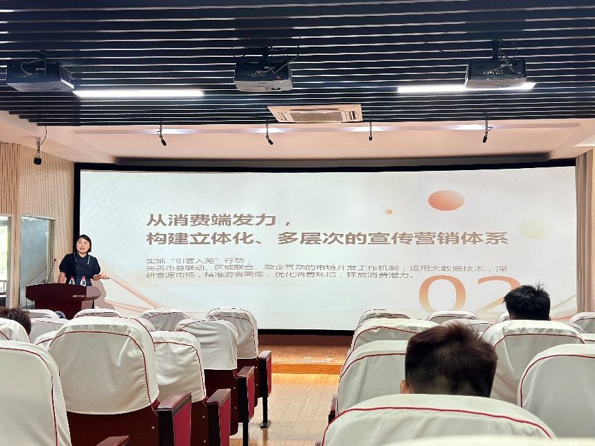 王娜重点围绕当前我国经济总体回升向好,文旅消费成为拉动内需的强劲动力这一趋势,结合全国旅游大会“一条道路、三个原则、五对关系、五项任务”,从芜湖市文旅产业发展现状、存在问题、解决方案及未来展望等方面进行了讲解。她结合丰富的案例和详实的数据,生动展现了芜湖文旅以新质生产力引领文旅产品迭代升级,聚焦“三感三力”“文旅+”业态不断丰富;聚焦“引客入芜”,文旅消费潜力持续释放;聚焦服务品质,城市形象整体提升的文旅高质量发展新画卷。