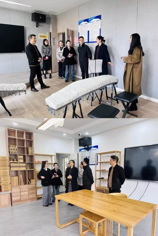 来访人员首先参观了学校银湖校区美育发展与实践中心。孙坤现场介绍了我校美育工作的建设历程,并带领来宾们参观了器乐、形体舞蹈、书画、茶艺等艺术俱乐部实训室,充分展示了在校党委的重视支持下,我校美育工作取得的突出成效。