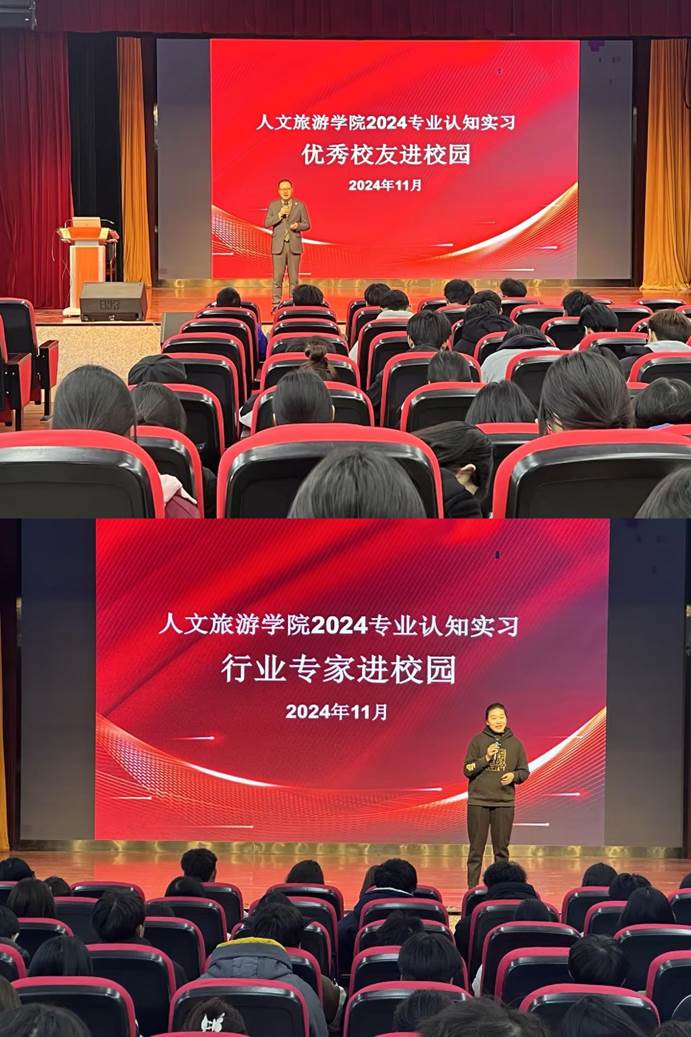 在校内认知实习活动中,学院分别邀请了优秀校友现任芜湖希尔顿逸林酒店运营总监沐贤峰和研学行业专家安徽荒野教育咨询有限公司运营总监王莉两名省级产业教授为学生们开展了专题讲座。产业教授们从文旅行业现状、企业人才需求、职业发展路径等多方面进行了脉络梳理和系统讲解。同时勉励学生在深耕专业知识的基础上,拓宽技能边界,提升综合素质。会后学生们与产业教授进行了交流互动,提出了自己对未来职业规划的困惑以及专业认知的迷茫,产业教授耐心为学生们答疑解惑并给予了宝贵建议。